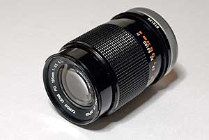 昭和55年(1980)、オートフォーカスのEOSシリーズ発売により、高度の電子制御機構を備えたEFレンズに、その座を譲った。EOSが採用したEFマウントは、フランジバックがFDより2mm長く、膨大なFDレンズは、最新機種にフィットしないために、30年近く忘れ去られていた。だから中古価格は驚くほど安値だ。 |