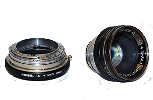 | 左:ライカM+コンクス用アダプター 右:Nikkor 5cm F1.4 |