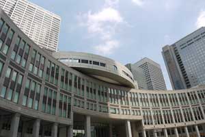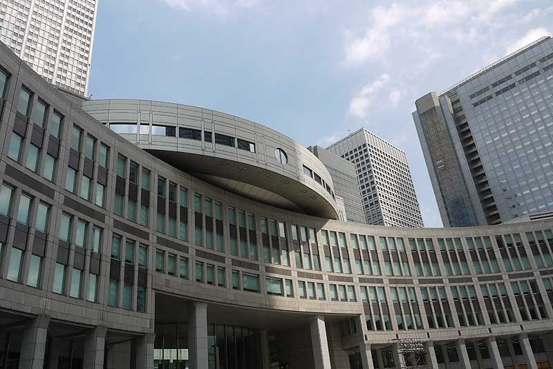 東京都議会棟を標準ズームとワイコン付きで狙った。フルサイズ換算で28mmと21mmの