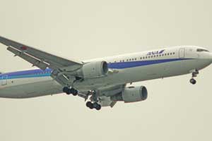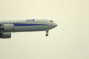 | ANA機 羽田空港へ着陸態勢に入った旅客機。無限遠は少し甘めかな。 |