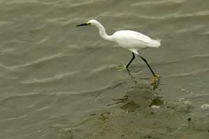 | シラサギ 餌を探すシラサギ。羽田沖の干潟で小魚を狙っていた。900mmはかなりの威力だ。 このテレプラス、やはり限界がある。色収差の影響だろうか偽色が発生して、解像感を 落としている。何となくスカッとしないのは、そのせいだろうか。 |