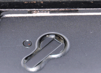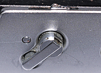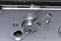 | 底蓋右の裏蓋開閉クランクとフィルムカッター | |