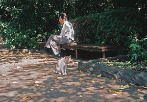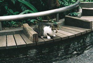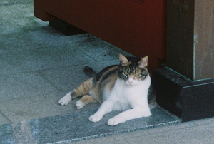 | 猫さらいに連れていかれて、めっきり数が減ったが、法華経寺のノラ達はようやく元気を取り戻してきた。今日(2012年7月9日)は4匹がモデルになってくれた。 |