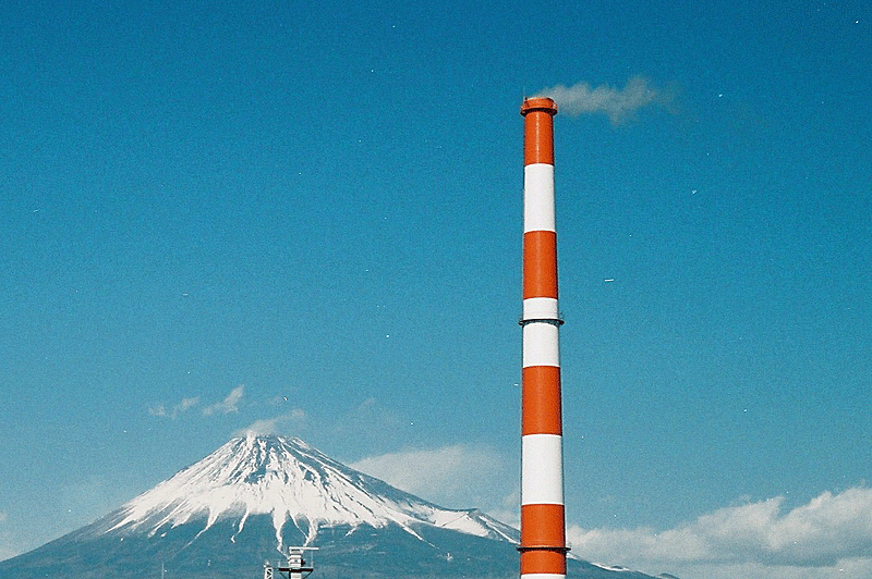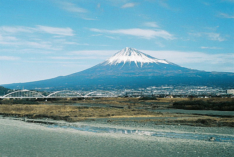 2018年2月17日、晴れた青空に浮かぶ富士山を、新幹線の車中から狙ってみた。ご自慢の自動巻き上げは効かないので、ごく普通のレバー巻き上げだ。 |