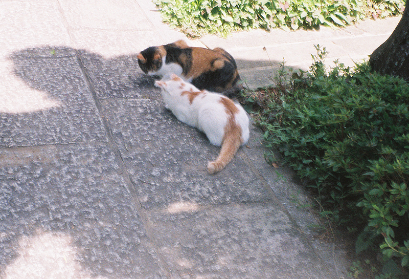| 彼岸が来てようやく猛暑が収まってきた。ノラ達も少しホットしたように、秋風を楽しんでいる。 |