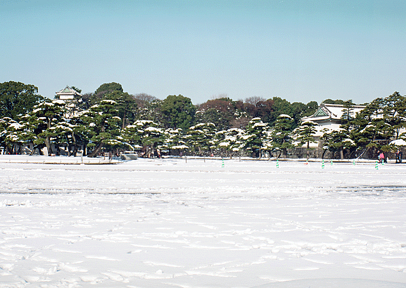 革靴で飛び出したので、一面に積もった雪に阻まれて、二重橋までたどり着けなかった。残念、無念。