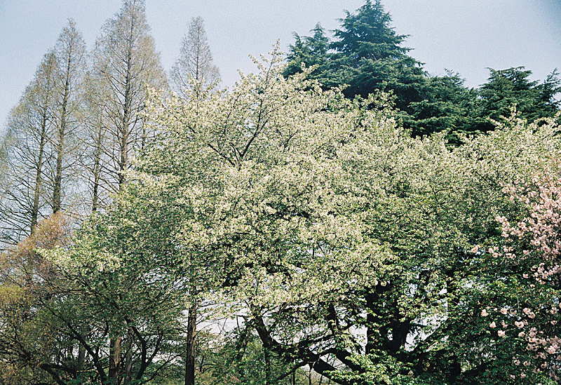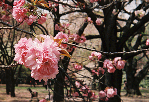 | 新宿御苑には桜の種類が多い。今年の春は早く、染井吉野は3月末には散り始めてしまったが、遅咲きの一葉、関山、八重紅しだれなどが、美しく咲き誇っていた。緑の葉がかなり濃くなった大島桜も、存在感を一段と増していた。 このカメラは目測ながら40cmまでの近接撮影が出来る。慎重にピントを合わせれば、ご覧の通り。咲き始めた関山の八重の花を、しっかりと撮ることが出来た。 |