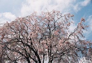 | 楽羽亭という茶室の庭にある2本の八重紅しだれ。福島の三春滝桜と同じ品種の桜だ。 撮り終わったら、ロック解除レバーを右に押しながら巻き戻す。子供用にしては、左右のノブがWIND、REWINDと英語表記なのが気になる。 |