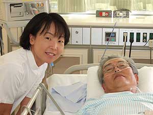 ナースの小野さん 元気でよく気がついて素晴らしいナース。 横浜出身でダイビングが趣味だという。 |