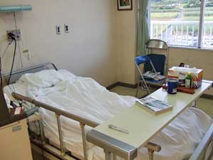 | 集中治療室は、若いナースが交代で世話を焼いてくれる。病気でなければ天国にいるような気分だ。毎日、熱いタオルで身体を拭いてくれるし、歯まで磨いてくれるのだ。足が動かせないから、身体中が突っ張って痛いのだが、優しく揉みほぐしてくれる。命に関わる状態にありながら、ちっとも不安を感じなかったし、何となく幸せな感じでもあった。 退院の日に、お礼の挨拶にICUに行ったら、みんなとっても喜んでくれて、さらにさらに幸せな気分になった。 |