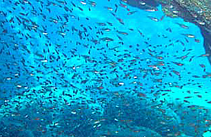 | アオボシヤドカリ | ウスモモテンジクダイの大群 |