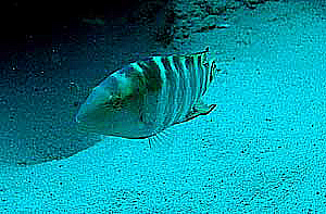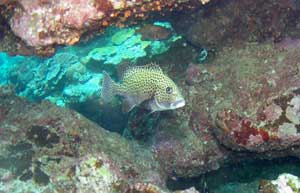 チョウチョウコショウダイ 幼魚との違いが激しい。 岩陰をゆったり泳ぐ。 |