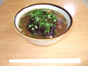 | 明石食堂のソーキそば 行列が出来る人気店。 ソーキ(豚のあばら肉)は大変おいしい。 一人前にしては多すぎるほどだ。 |