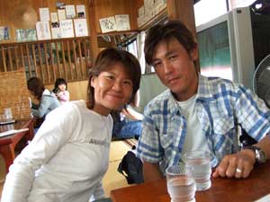 | ダイビングショップBANANA 24日も北風が強い。ネイチャー石垣島DSの多羅尾さんが気の毒がって 町中のショップBANANAを紹介してくれた。竹富島の南なら潜れるという。 右は、オーナーの佐々木さんご夫妻。親切なアテンドでリラックスして楽しめた。 |