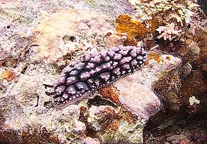 | コイボウミウシ 陸上のカタツムリやナメクジなどに 近い種だが、ウミウシは色彩が美しい。 |