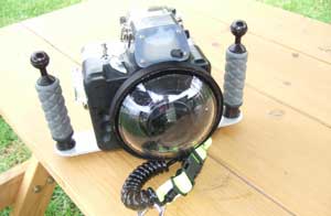 ペンタックス魚眼レンズ ペンタックスの10−17フィッシュアイを つけた愛機。ハウジングはDIVの特製だ。 カメラ負けしているかもね。 |