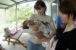 | 2006年10月2日(月)、リタイアして初めてのダイビングは、やはり石垣島だ。今回はウイークデイの旅だから、一人旅である。前回お世話になったネイチャー石垣島ダイビングサービスに向かった。オーナーの多羅尾さん夫妻には、今年8月に琉太君が誕生していた。赤ちゃんとの面会も楽しみだった。 あいにく台風16号が近づいていて、コンディションは決して良いとはいえなかったが、多羅尾さん、糸山さんの適切なガイドで、透明な石垣の海を楽しんだ。 |