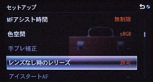 | 2.セットアップでレンズなし時のレリーズを許可 | |