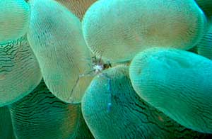 バブルコーラルシュリンプ このコーラルを住処とする極小のエビ。 身体が透明なのでピントが合わせにくい。 |
