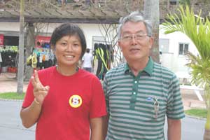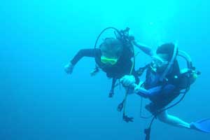 元木さんと 元木さんは泳げないのに、彼女についての 体験ダイビングでご満悦。Cカードに挑戦。 見事取得に成功した。 |