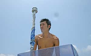 | 2005年の7月と8月に石垣島に遊んだ。青木、元木の両氏と一緒だ。7月の石垣島は台風5号が居座って、さんざんな旅になった。それでも、着いた日に1本、次の日に2本潜れたから、まあ、ヨシとしよう。再挑戦した8月は9日から12日まで、心ゆくまで楽しんだ。 これで昨年10月、Cカード取得に挑戦してから、累計潜水回数は17本、延べ潜水時間は10時間30分となった。 |