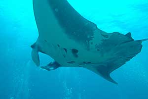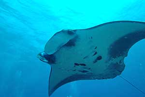 | マンタが来たぞ!! 巨大なオニイトマキエイ。石垣島の川平石崎のスポットは文字通りマンタスクランブルだ。 |