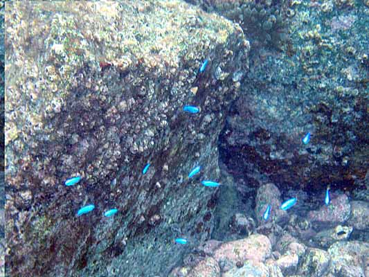 | ソラススメダイ たくさん群れている。ピントがなかなか合わない。 |
