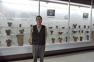 | 岡谷美術考古館 今日はゴルフ組と別れて3人で遺跡めぐりだ。最初は岡谷美術考古館。蚕糸博物館に同居している。岡谷市近辺の遺跡からの出土品を展示している。 |