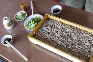 | 手打ち更科 諏訪の名店「手打ち更科」の3色そば。小山氏と斎藤氏は4色そば。キリッと冷たくてうまい。 |