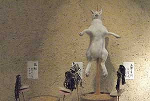 鹿と猪の頭 これだけ並ぶと不気味だ。 シカとイノシシの頭を神に捧げた。 |