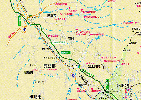 | 阿久遺跡 縄文前期の環状列石の遺跡だ。中央道の工事中に出土したが、埋め戻して一部は高速道路になった。案内板が唯一の手がかりだ。カーナビも迷うほどにわかりにくい。中央道の原パーキングエリアの近くだ。北に蓼科山、東に八ヶ岳を望む。 |