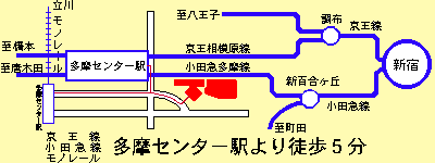 | 上図西端の境川は、JR横浜線の相原駅の近くから橋本駅の西を町田街道に沿って流れる。南端の三沢川は、鶴川街道に沿って流れ京王線若葉台駅から京王相模原線に平行して多摩川に注ぐ。この、境川、三沢川、多摩川に囲まれた丘陵地帯に、東京のベッドタウン多摩ニュータウンが開発され、開発工事の中でおびただしい数の遺跡が発掘された。 遺跡の時代層は、旧石器時代から縄文、弥生、近世に至るまで幅広いが、特に縄文早期、前期、中期の遺跡群が群を抜いて多く、貴重な出土品は東京都埋蔵文化財センターに保管され、無料で一般市民に公開されている。 上図の中央を流れる乞田川の南岸、451と457遺跡の中間に、この文化センターは位置している。京王相模原線、小田急多摩線の多摩センター駅から徒歩5分の至便の地だ。 |