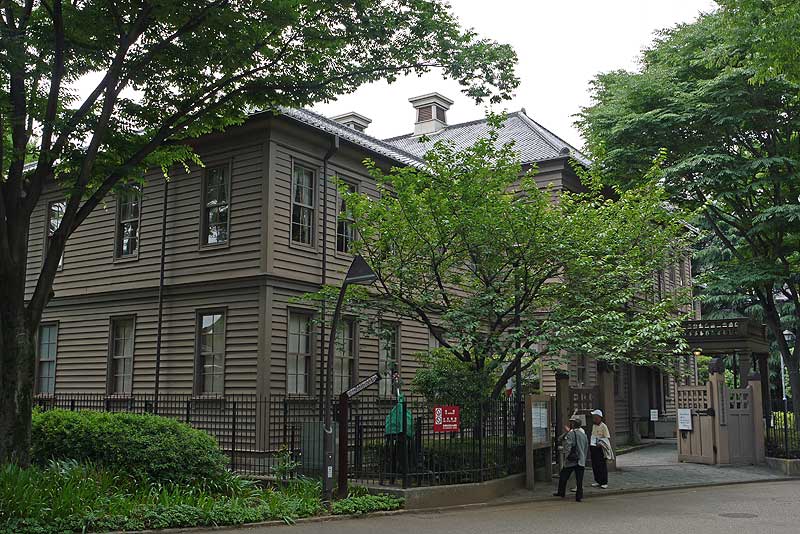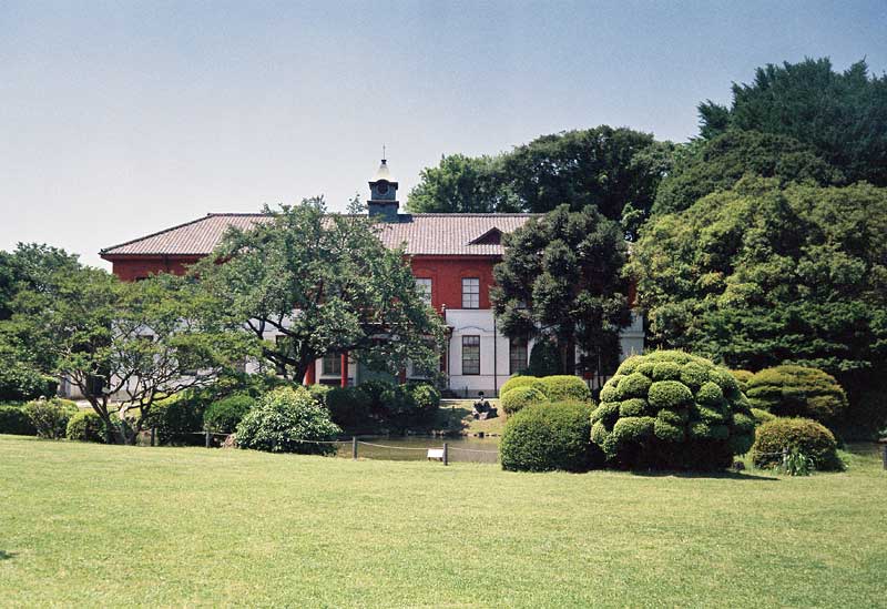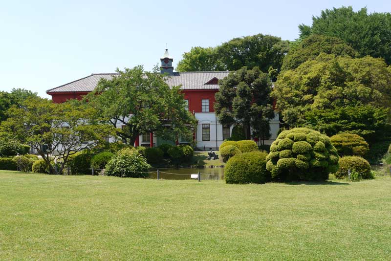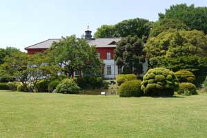 東京大学医学部の前身東京医学校の校舎である。昭和44年に東京大学構内から、小石川植物園内に移設された。木造2階建ての擬洋風建築だが、白と赤のコントラストが美しく、周囲の日本庭園によくマッチしている。国の重要文化財。