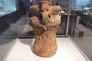 | 深鉢 中っ原遺跡 上部と下部に別れた複雑な造形。 いったい何に使ったのだろう。 |