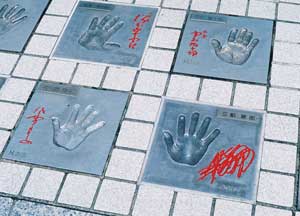 雷門と演芸場の手形を撮ってみた。キャノンはシャープで撮っていて楽しいレンズだ。