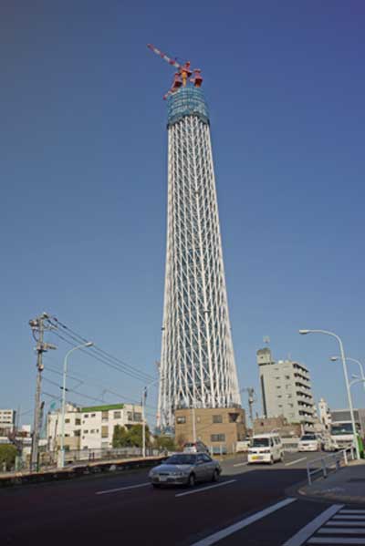 使いこなすのが難しいレンズだが、非常に面白い効果が期待出来る。楽しいレンズで手放せない。至近距離での東京スカイツリーも、横位置で入ってしまう。