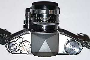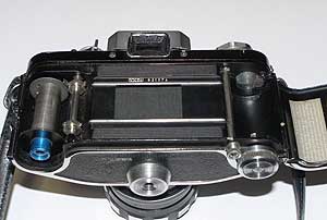フィルムの装填は楽だが、巻き戻しは注意を要する。巻き戻しノブの左上の小さなネジに触れないこと。このネジを引っ張ると、なんとカメラの中でフィルムが切断されてしまう。フィルムが貴重だった頃の名残だが、かなり危険なメカニズムである。