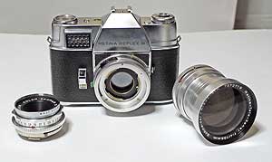 | ドイツは、世界でもっとも機械工業が発達した国のひとつである。だからドイツ人は合理的かというと、時々、極めて不合理な発想をする民族でもあるらしい。カメラの世界でもその実例はいくつもあるが、ここでは、1950年代の終わりから60年代に、ドイツで流行したレンズシャッター式一眼レフをまな板に乗せよう。 |