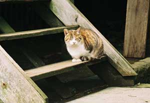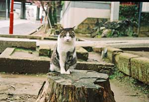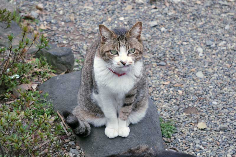 50mmレンズは、GF1に付けると100mmの画角になる。ちょうど境内の池に飛来したアオサギと、この宮に居着いた猫を狙った。100mmの画角は、こういう被写体に最適である。