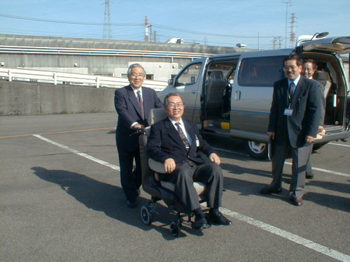 車椅子に乗っているのが私、押しているのは豊田章一郎氏
