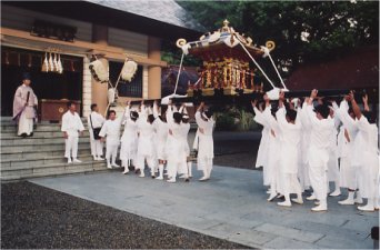 14日朝11時、祭りは元八幡の境内で静かに厳粛に始まった。