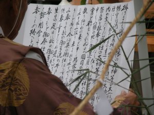 | 祝詞奏上 | 国司の祭絶ゆることなき続き、縁故深きこの 宮の御手洗の水をくみ取り、神前に供えると の祝詞である。 |