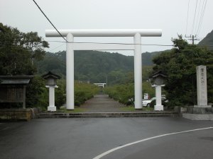 | 安房神社大鳥居 右の神社名を刻んだ碑は東郷平八郎の書 |