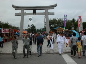 | 鶴谷八幡の大鳥居 館山の町は祭り一色だ。 |
