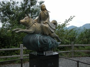 | 八房と伏姫の像 | 展望台。安房国が一望のもとだ。 |