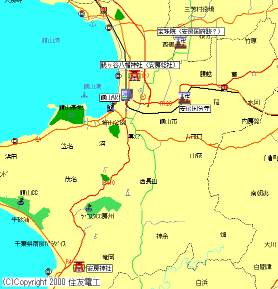 安房国の国府は未だ遺跡が見つかっていない。しかし、和名抄に平群郡とあり、現在安房郡三芳村