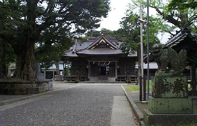 | 本殿 古式ゆかしい平入りの神明造り 千木の先端が水平に切られる内削ぎなので 女神かなっと思ったが、神職さんは単純な間 違いだという。 |