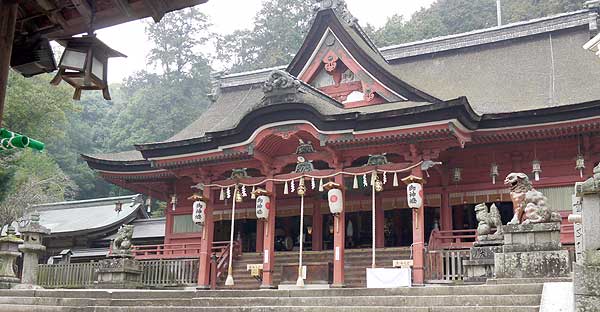 | 備後国一ノ宮は、福山市新市町に鎮座する吉備津神社である。吉備国が4カ国に分割された際に、備中の吉備津神社から分祀されたと思われる。拝殿を通さずに、本殿に直接参拝出来る独特の様式で、神仏混淆の名残を色濃く残す。 祭神は、 大日本根子彦太瓊命は、第七代孝霊天皇のことで、古事記によれば吉備国を平定した大吉備津彦命の父帝である。五十狭芹彦と呼ばれたこの皇子は、第十代崇神天皇が全国平定に派遣した四道将軍の一人で、吉備国を平定したので吉備津彦を名乗る。 |
