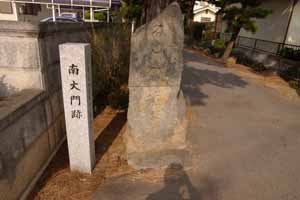 南大門跡の表示 松の巨木の根元に南大門の表示が。 見のがしそうだ。 |