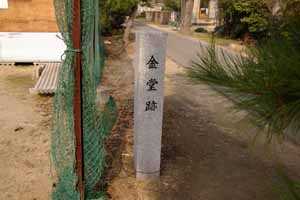 | 講堂跡 講堂の遺構を参道がぶった切って いるように見える。 |